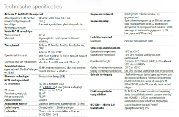 De AirSense 11 Autoset is een apparaat dat automatische de druk aanpast, voor obstructief slaapapneu met geïntegreerde bevochtiger (optie), draadloze connectiviteit, updates op afstand en verbeterde patiëntondersteuningsfuncties.